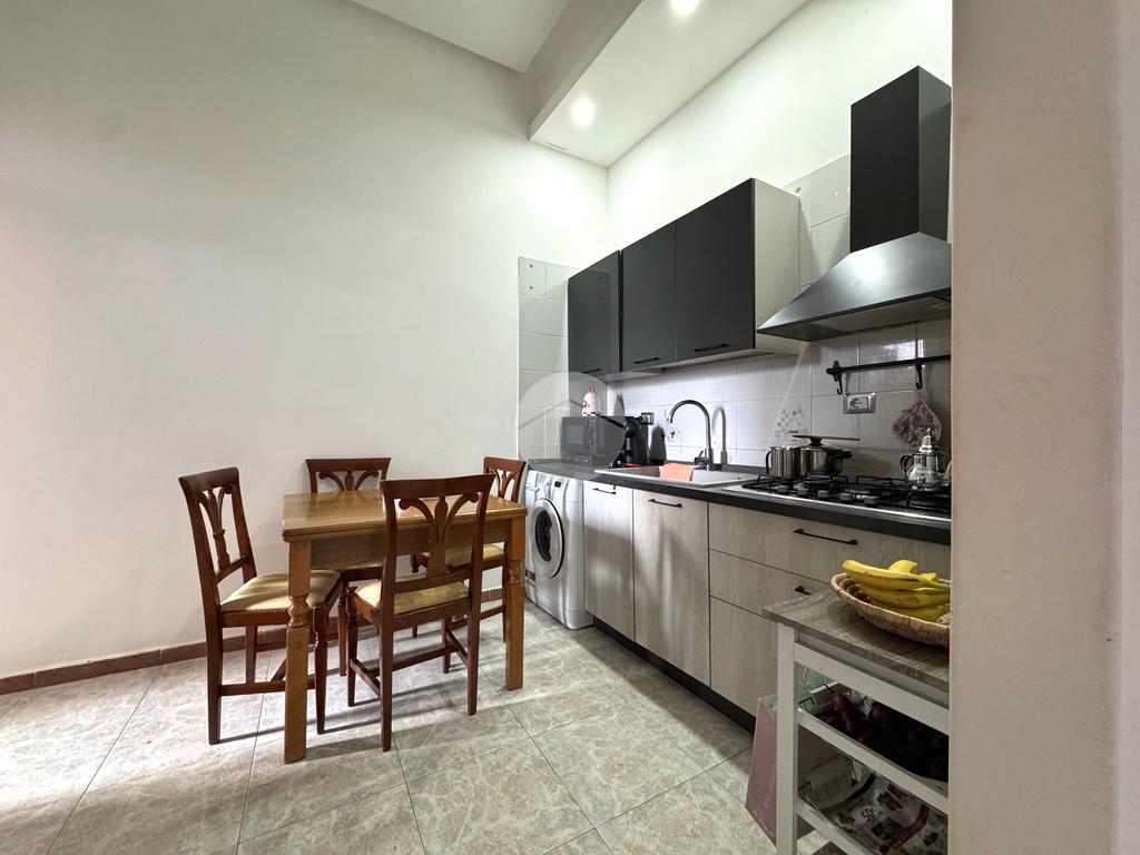 Un comodo soggiorno con accesso al balcone;una cucina semi abitabile, un bagno con vasca, camera da letto e un ripostiglio ideale anche come cabina armadio.