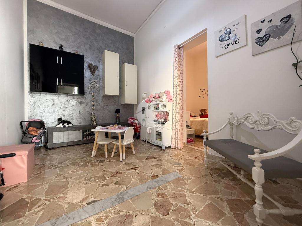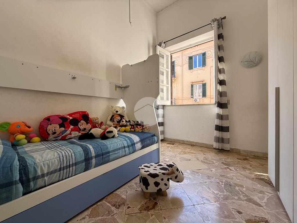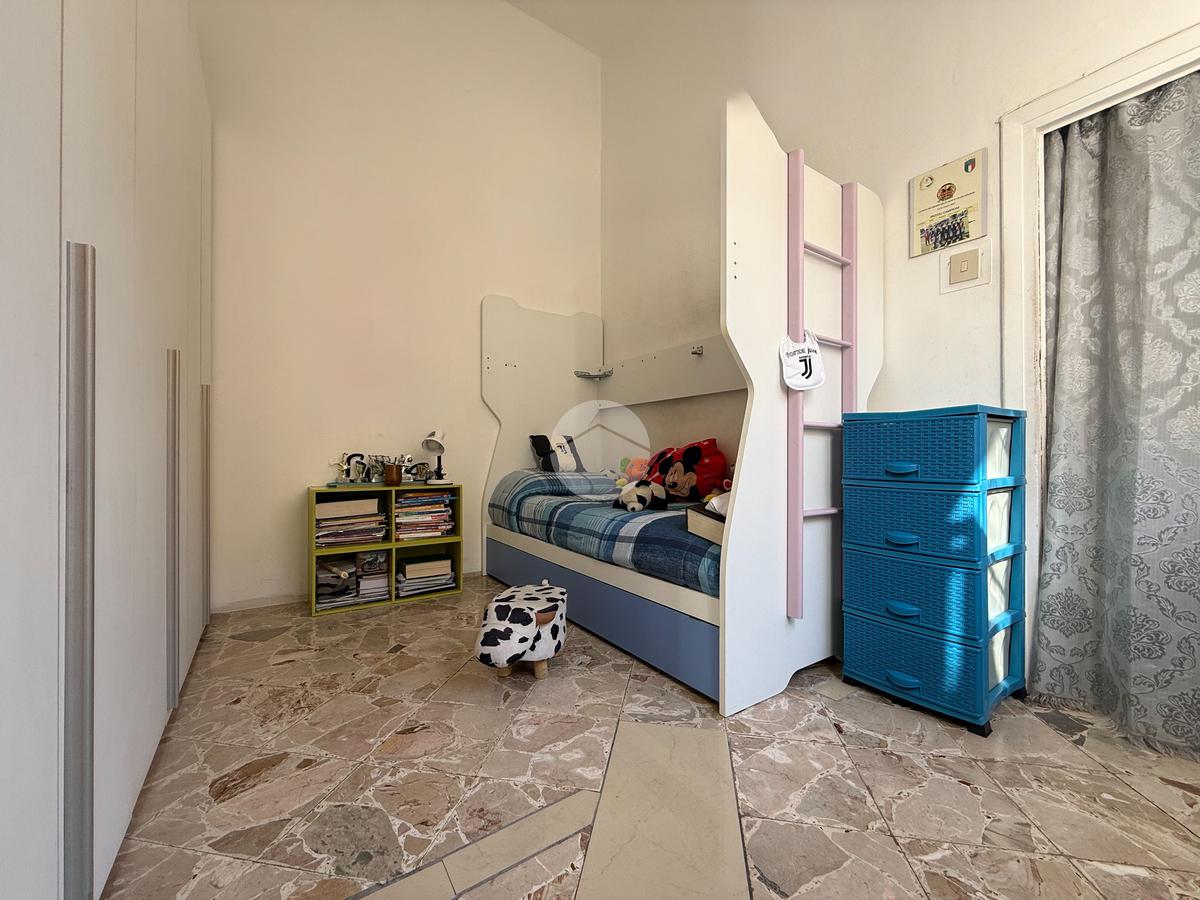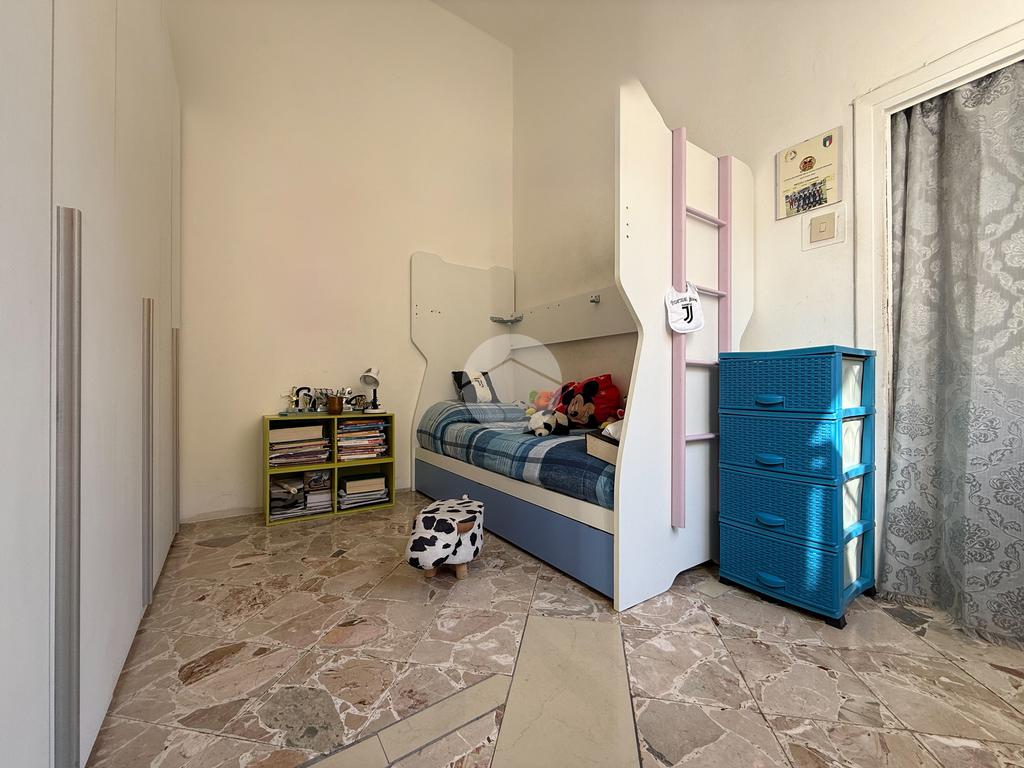L’immobile, luminoso e ben distribuito, è composto da ingresso su camera, due camerette, cucina-soggiorno, servizio, camera matrimoniale, ripostiglio/lavanderia e due balconi.