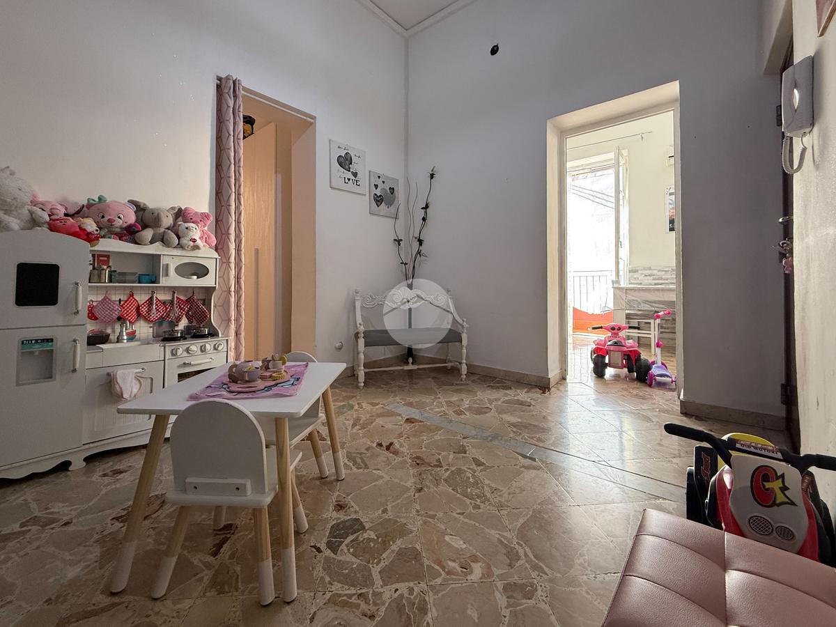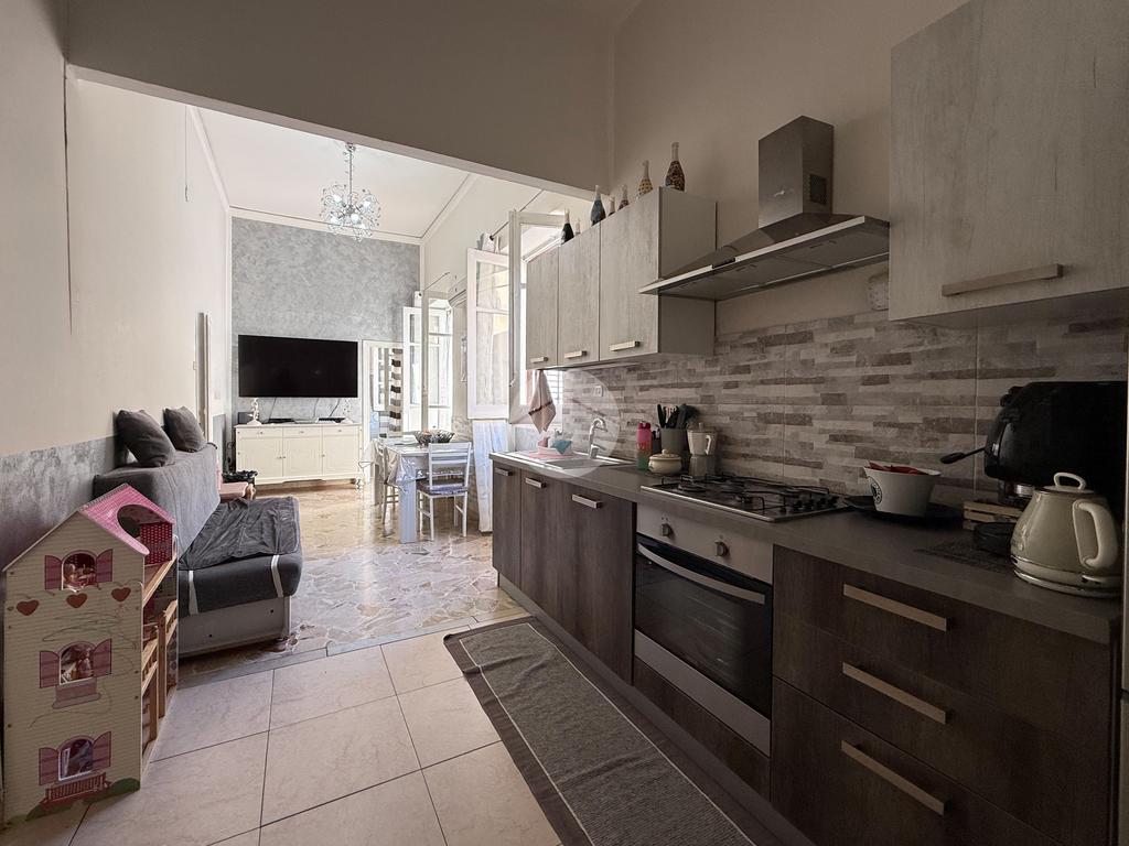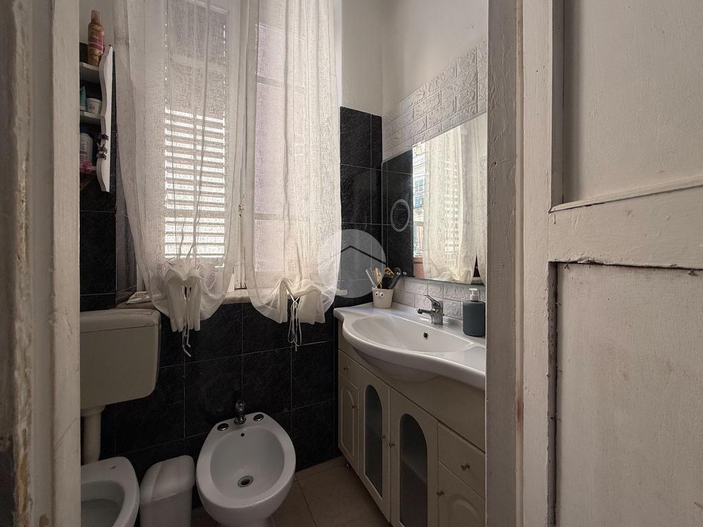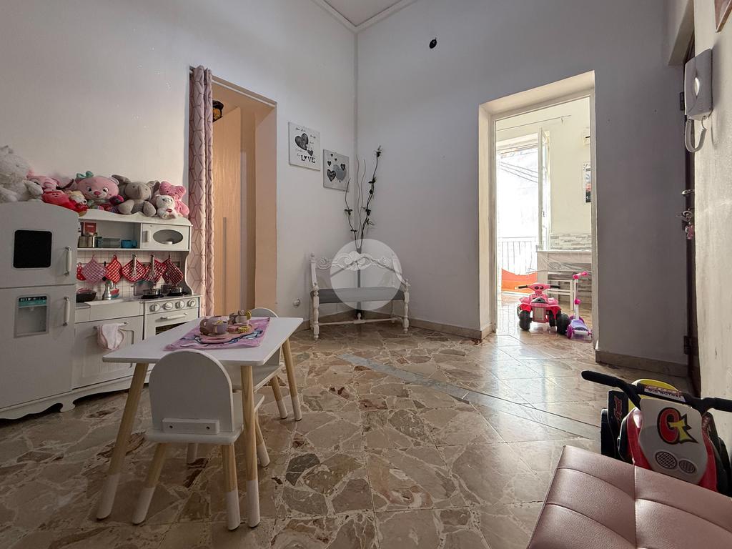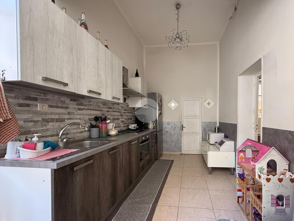 L’immobile, luminoso e ben distribuito, è composto da ingresso su camera, due camerette, cucina-soggiorno, servizio, camera matrimoniale, ripostiglio/lavanderia e due balconi.