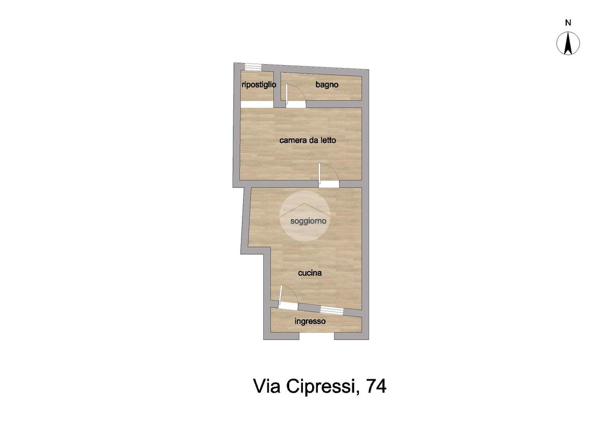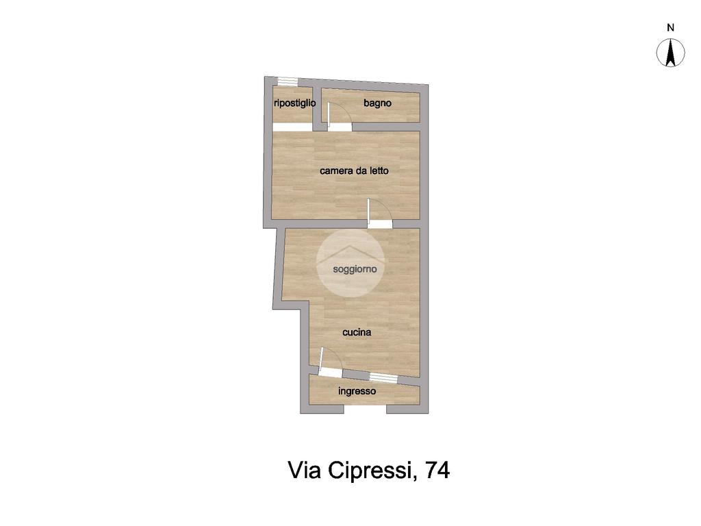 L’immobile è composto da una camera da letto, un soggiorno accogliente e una cucina, un bagno cieco e un ripostiglio, spazi ben distribuiti che rendono l’appartamento funzionale e facile da vivere.