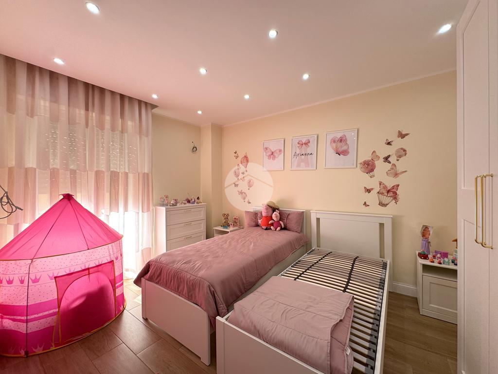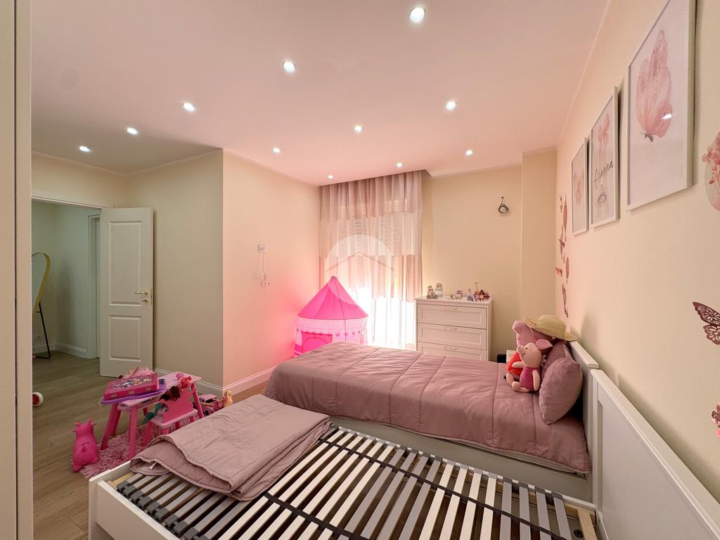 L’immobile si distingue per una distribuzione interna razionale e armoniosa degli ambienti. L’ingresso introduce direttamente alla zona notte principale, dove troviamo una luminosa camera da letto matrimoniale. La cameretta, accogliente e ben proporzionata, dispone di uscita su balcone, garantendo luce naturale e un piacevole sfogo esterno. Il bagno, finestrato e rifinito con materiali moderni, assicura comfort e praticità.